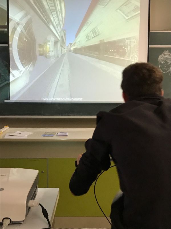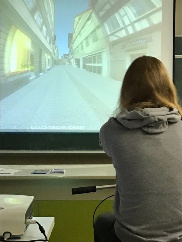 Die interaktiven Unterrichtsmodule des Projektes ermöglichen einmalige Erfahrungen, wie das Radfahren mit fast Lichtgeschwindigkeit durch die Tübinger Altstadt, eine rasante Flugsimulation durch eine unbekannte Insellandschaft oder das Spiel mit einem Schwarzen Loch.