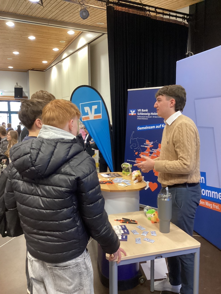 Am Schuljahresende werden die Schülerinnen und Schüler des Einführungsjahrgangs im Rahmen eines Trainings in der Dithmarscher Volks- und Raiffeisenbank zum Thema Bewerbung geschult.