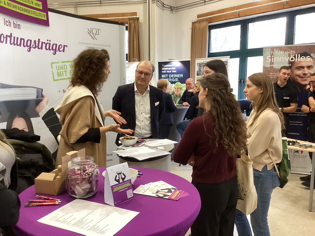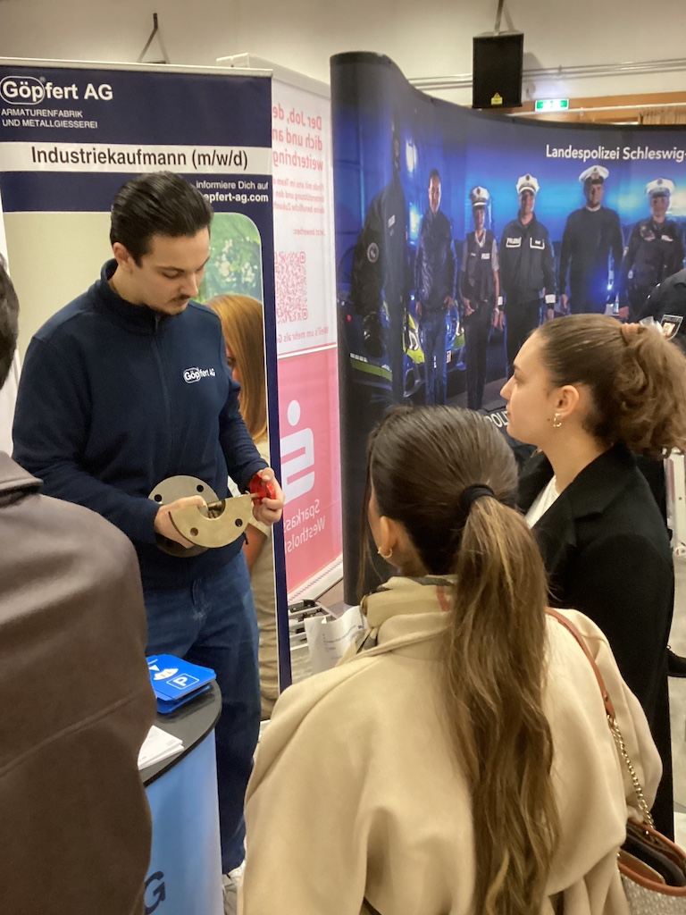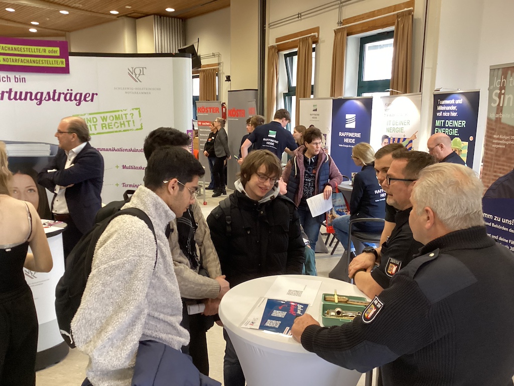 Weiterhin besteht für die Schülerschaft in Q1 die Möglichkeit, im Herbst an der Veranstaltung Studieren lohnt sich an der FH Westküste teilzunehmen um dort im Rahmen eines Schnuppertages eventuelle Ideen und Vorstellungen zum Thema Studium zu festigen oder auch zu verwerfen. Darüber hinaus können die Schülerinnen und Schüler des 11. Jahrgangs an der Chefsesselrallye der IHK, der Jobmesse nordjob sowie nach Absprache an weiteren Berufsmessen teilzunehmen.