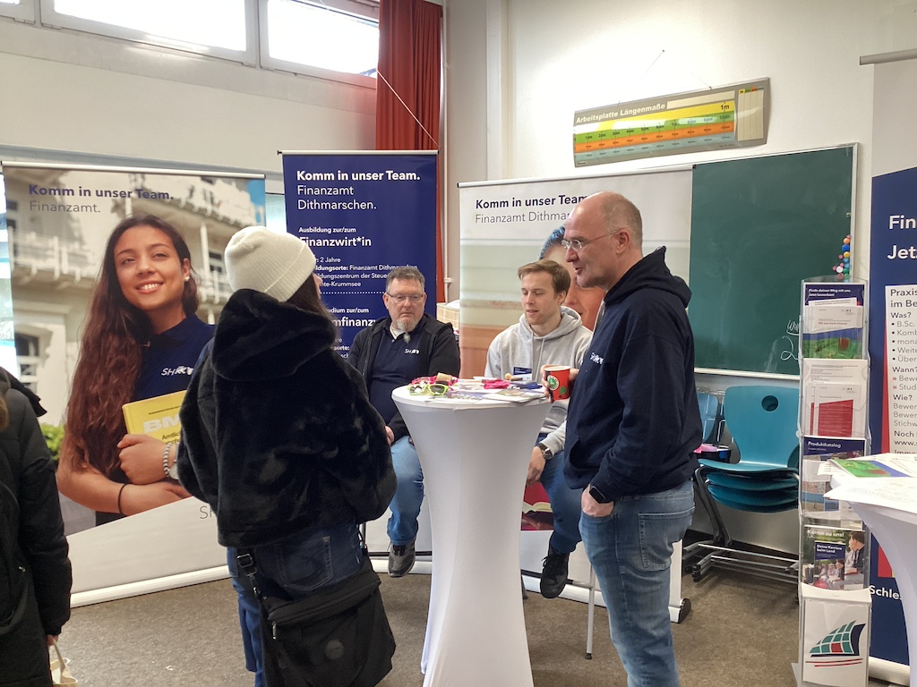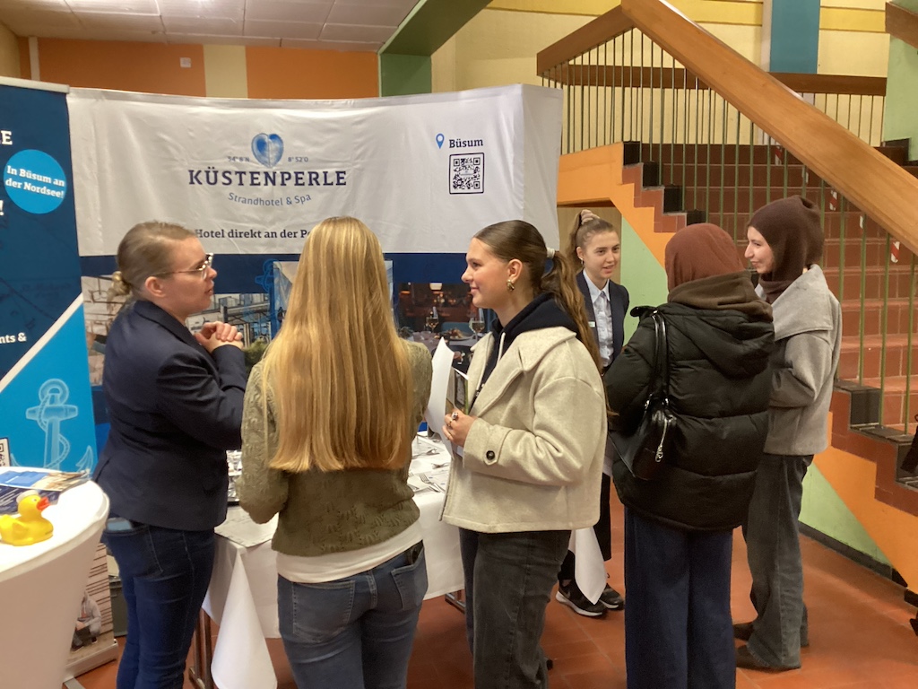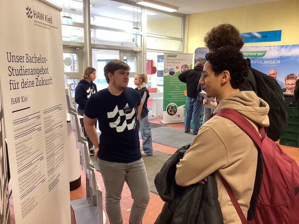 ... nimmt in jedem Schuljahr an den Berufsorientierungstagen der FH Westküste teil. Dort werden den Schülerinnen und Schülern in Vorträgen aus Wirtschaft, Fachhochschule und Behörden Einblicke in die Arbeits- und Hochschulwelt gewährt.