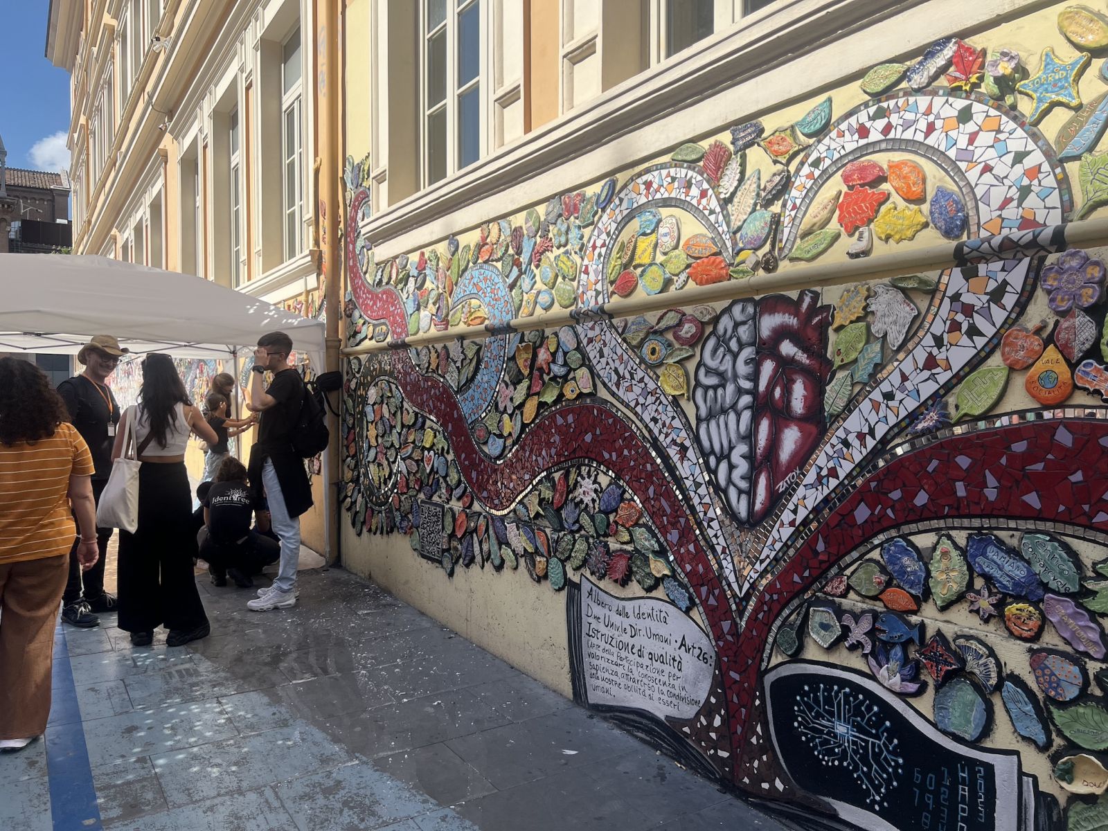 Dabei ging es um einen Workshop bei dem sich die Schülerinnen und Schüler mit ihrer Umwelt und den eigenen Stärken bewusst auseinandersetzten. Die Gruppe war hierbei eine Art Spiegel aller positiven Eigenschaften für jeden einzelnen. Diese Eigenschaften sollen allen Teilnehmerinnen und Teilnehmern dabei helfen, sich in Zukunft die eigenen Stärken und Kompetenzen immer wieder bewusst zu machen und diese in Bereichen wie Bildung, Umgang mit Gewalt und Vielfalt als Handlungsstratgien zu nutzen. Die daraus entstandenen Blätter aus Ton werden zukünftig an einem „Identitree“ an einer Fassade in Rom auf ewig ihren Platz finden und Teil eine großen Ganzen sein.