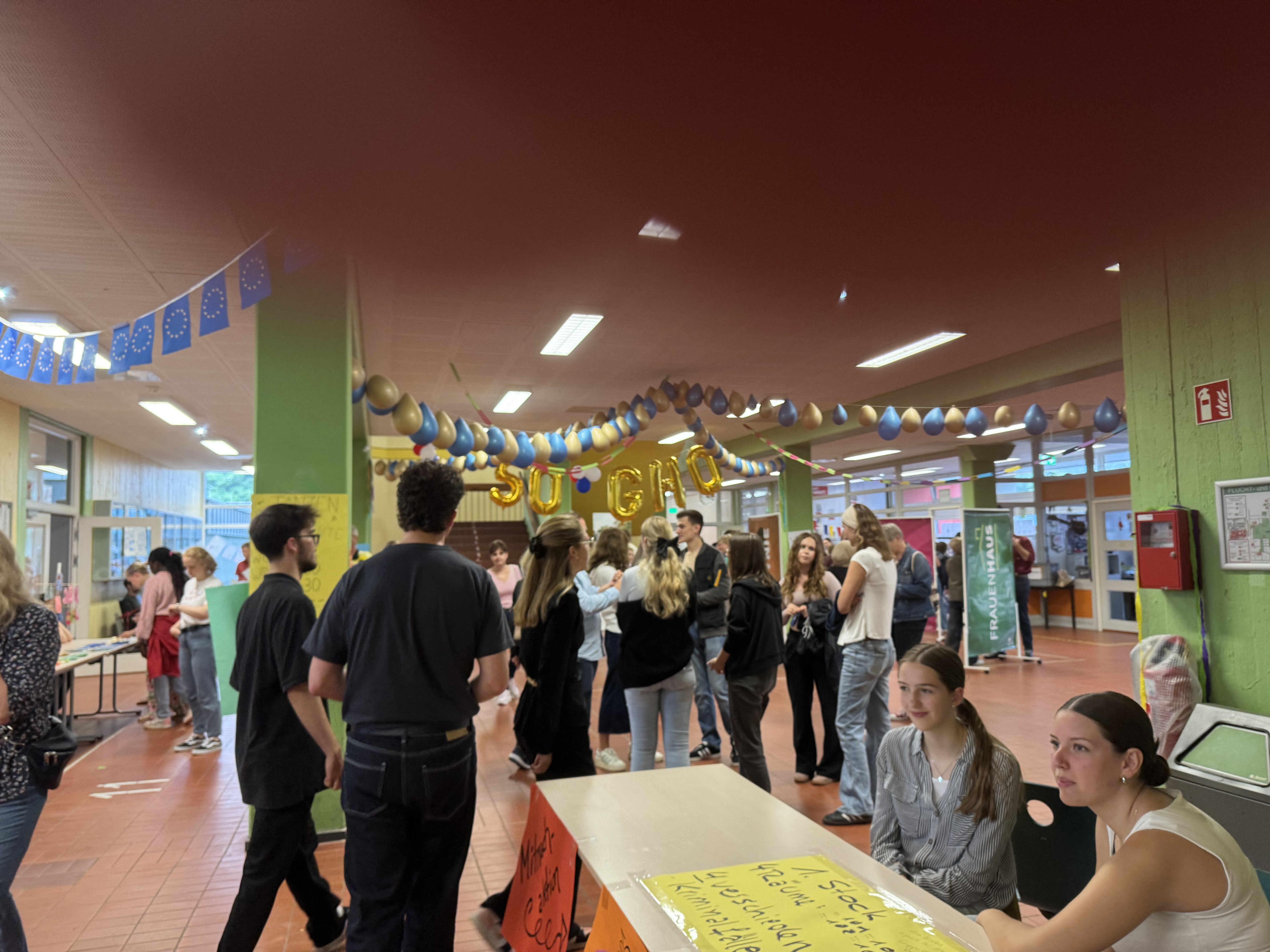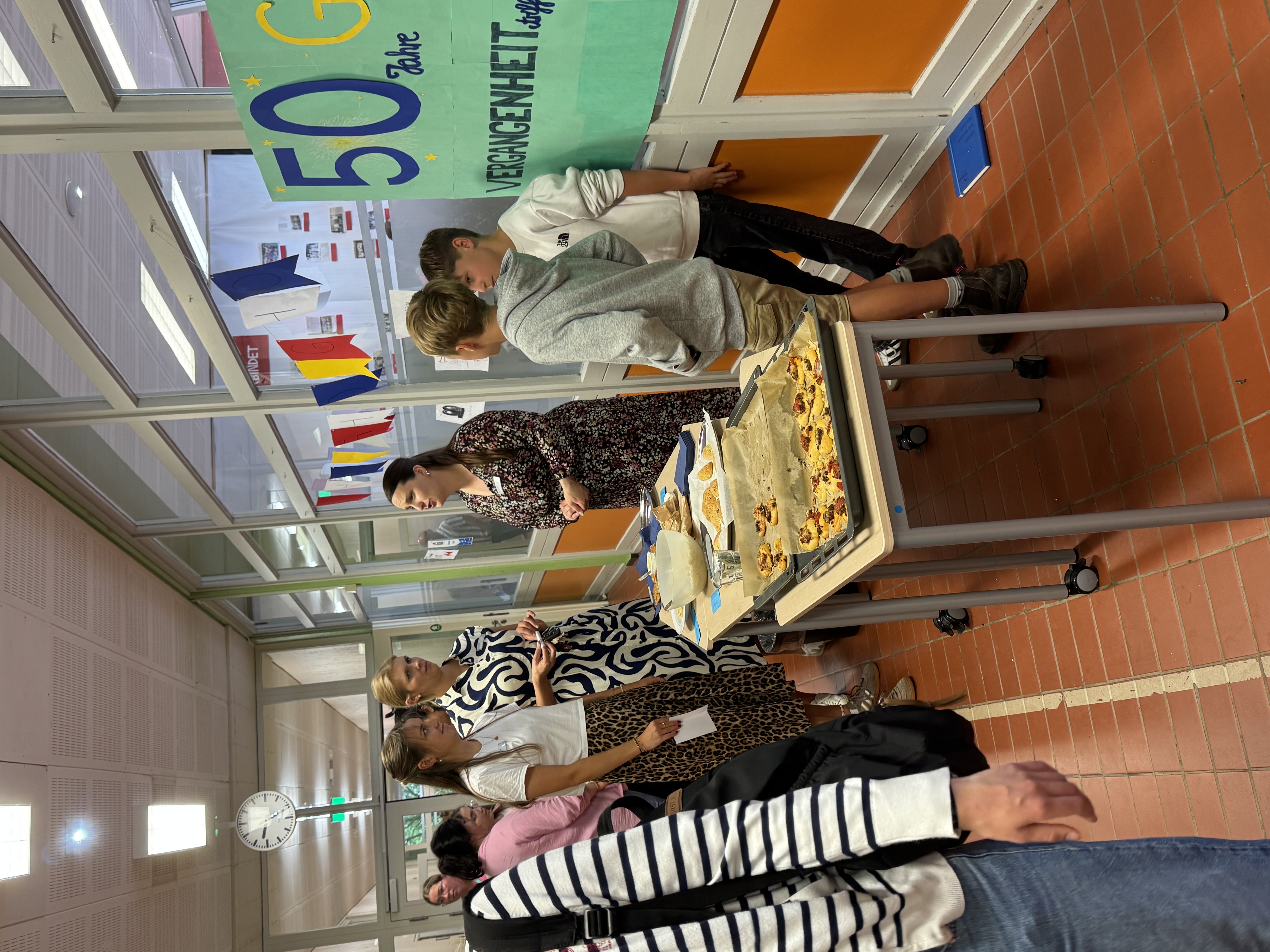 Die Jubiläumswoche fand nach einem feierlichen Festakt am Mittwochabend ihren Höhepunkt in unserem Schulfest am Donnerstagnachmittag, für das die Türen offen standen. Das Angebot, dass die Schülerinnen und Schüler in der Projektwoche erarbeitet hatten, um die Besucher zu unterhalten, reichte von internationaler Küche über zahlreiche Darbietungen, die sich auf Mode, Tanz und Lebenskultur der vergangenen fünf Jahrzehnte erstreckte bis hin zu Mitmach-Angeboten. Wer nicht mit leeren Händen nach Hause gehen wollte, konnte sich mit reichlich GHO-Souvenirs oder einer Schulchronik versorgen.