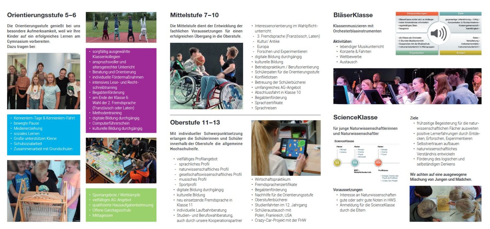 Geplant sind für euch, liebe Kinder, eine kindgerechte Einführung in unserem Kultur-Forum und anschließend der Schnupperunterricht mit den Kindern der 5. Klassen. Dabei könnt ihr euch zwischen unserer BläserKlasse, der ScienceKlasse und unserer RegelKlasse entscheiden. In allen Klassen gibt es Spannendes zu entdecken.