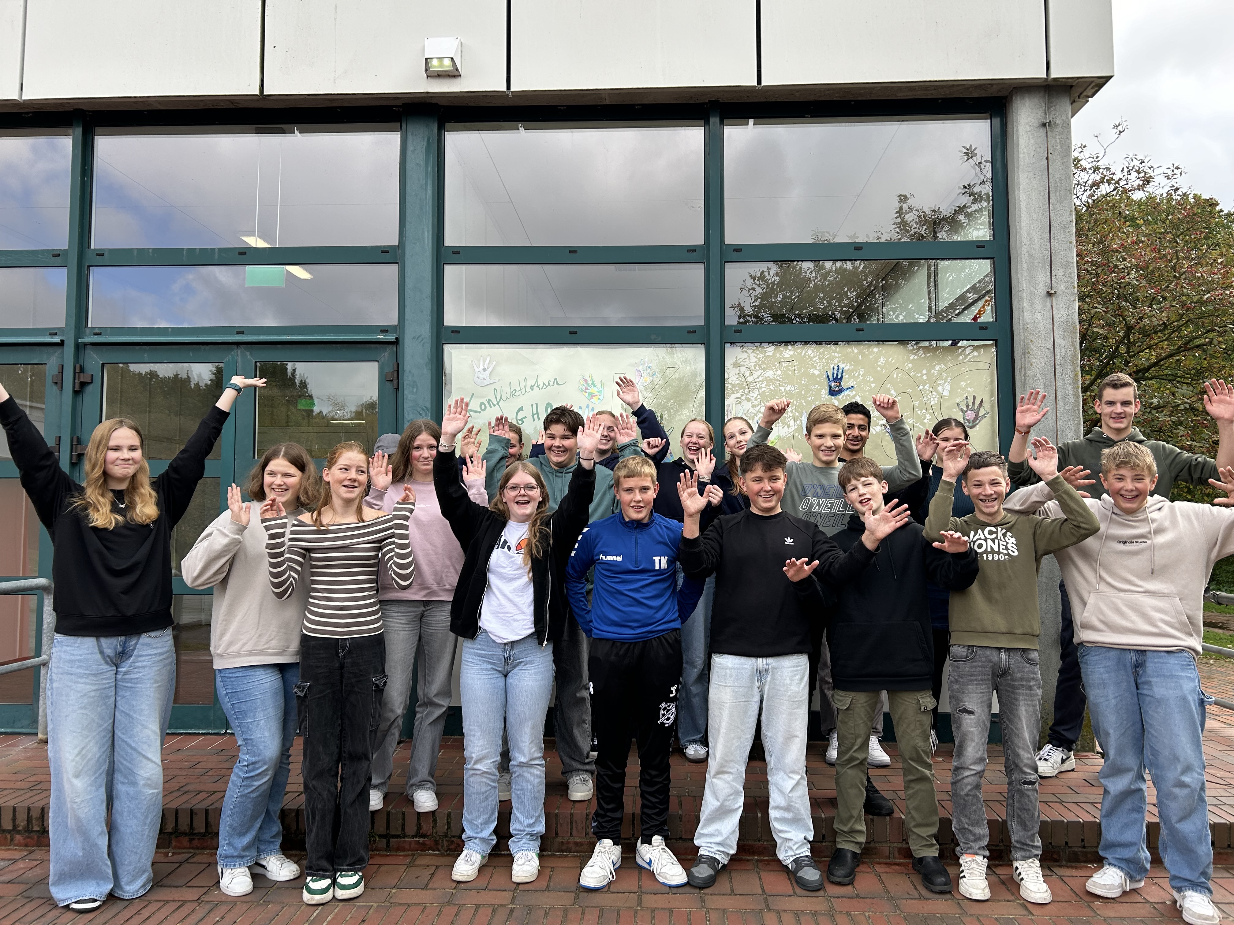 Hier sind unsere neuen ausgebildeten Konfliktlotsen aus dem 8. Jahrgang, die Meister der friedlichen Einigung. Sie stehen für euch bereit! Mit Freundlichkeit, Geduld und super Tipps für friedliche Lösungen helfen sie, wo immer der nächste Streit lauert. Ihr könnt sie in der 1. und 2. großen Pause aufsuchen (kleine Halle Biologie), denn Schule macht ohne Zoff einfach mehr Spaß. :)