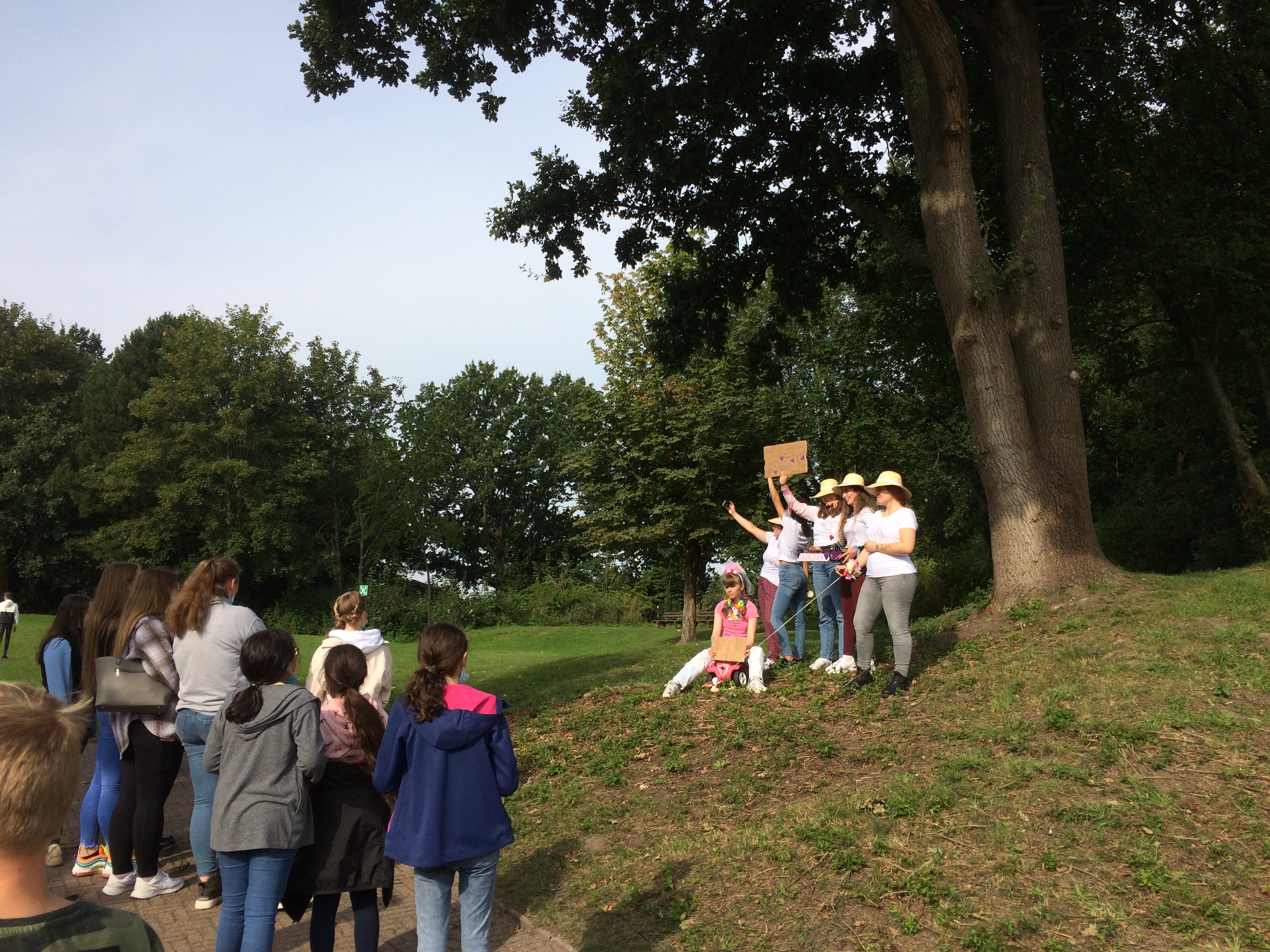 Viele neugierige Gesichter versammelten sich auch dieses Mal wieder um den 11. Jahrgang und ihr Pausentheater, ein Projekt des Faches Darstellendes Spiel.