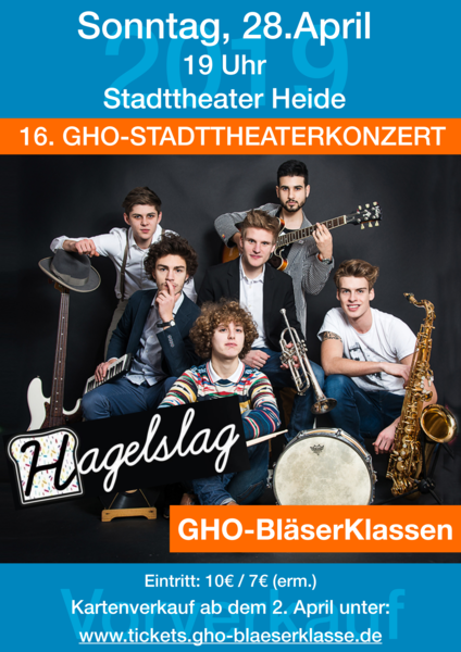 Am Samstag, den 27.April 2019 findet der Vorbereitungs-Workshop für die Bläserklassen mit der Band „Hagelslag“ im Forum des GHO statt.