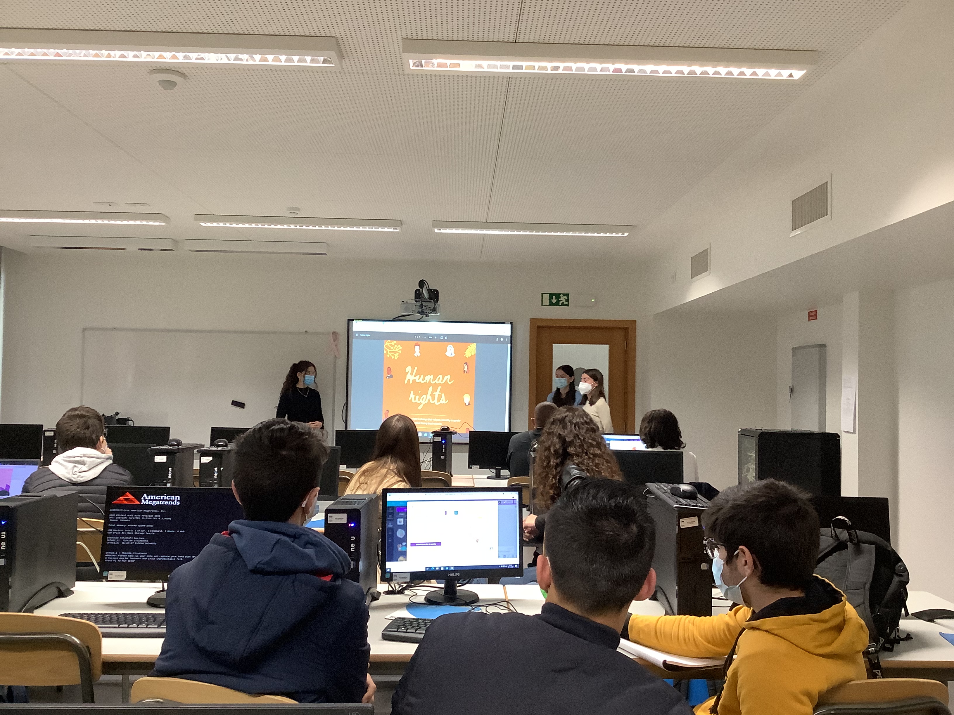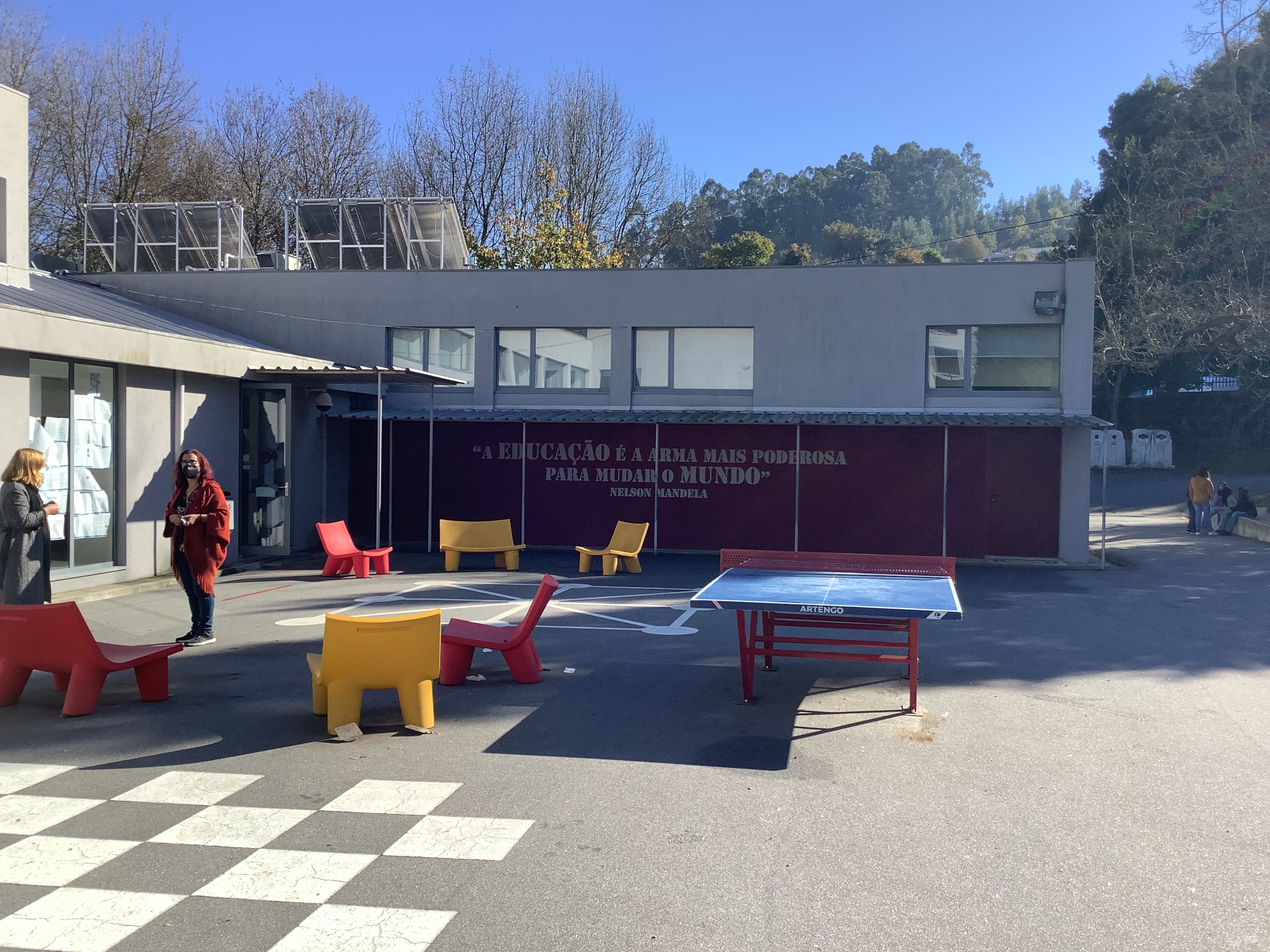 Inhaltlich bietet die Schule einen weiteren Anknüpfungspunkt: Die Schüler haben die Möglichkeit einen musikalischen Zweig zu besuchen. Sie lernen klassische Instrumente und haben auch die Möglichkeit eine Chorklasse zu besuchen. Dies passt hervorragend zu unseren Bläserklassen. Die Schule verfügt über eine schuleigene Mensa und eine Bibliothek. Die ca. 500 Schülerinnen werden dort mit einem selbstgemachten Essen versorgt, das einem Ernährungsplan folgt. So gibt es dreimal die Woche ein Fischgericht. Die Bibliothek steht allen Schülern offen. Coronabedingt dürfen die portugiesischen Schüler sich nur in ihrer „Blase“ bewegen. Daher gibt es jetzt einen Ausleihschalter, der eine Ausgabe und Rückgabe ohne Zutritt ermöglicht. Insgesamt ist die Schule seit Coronazeiten digital organisiert. Schüler, Lehrer und Schulleitung arbeiten mit Microsofts Cloudsystem „Office 365“. In den Klassenräumen sowie in der gesamten Schule gibt es eine flächendeckende WLAN-Versorgung. Die Schüler arbeiten mit ihren Mobiltelefonen oder eigenen privaten Laptops. Die Ausstattung der Schülerinnen und Schülern mit Arbeitsgeräten steht noch aus, ist aber geplant.
