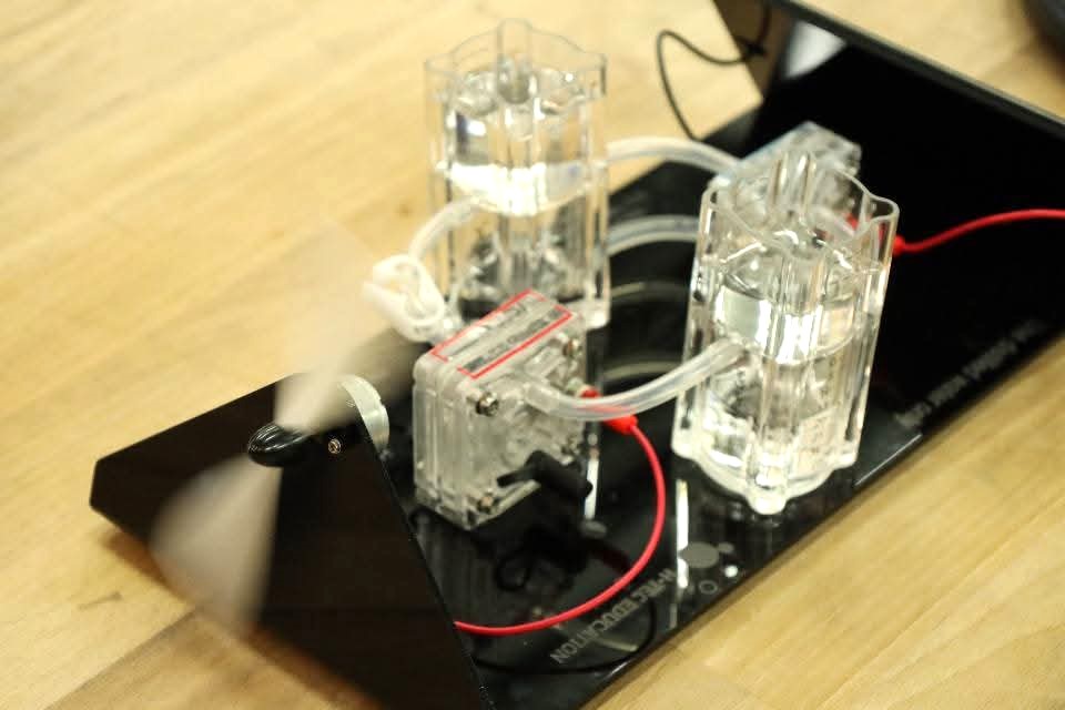Nach einem gemeinsamen Mittagessen besuchten wir die Firma H2Core Systems ganz in der Nähe des Bahnhofs in Heide. Hier werden Anlagen zur Gewinnung von Wasserstoff hergestellt. Das Modell wurde uns von Praktikanten des WHG vorgestellt.