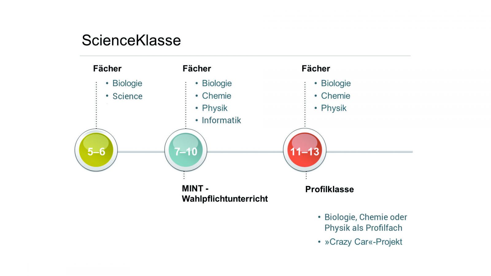 - frühzeitige Begeisterung für die naturwissenschaftlichen Fächer ausweiten